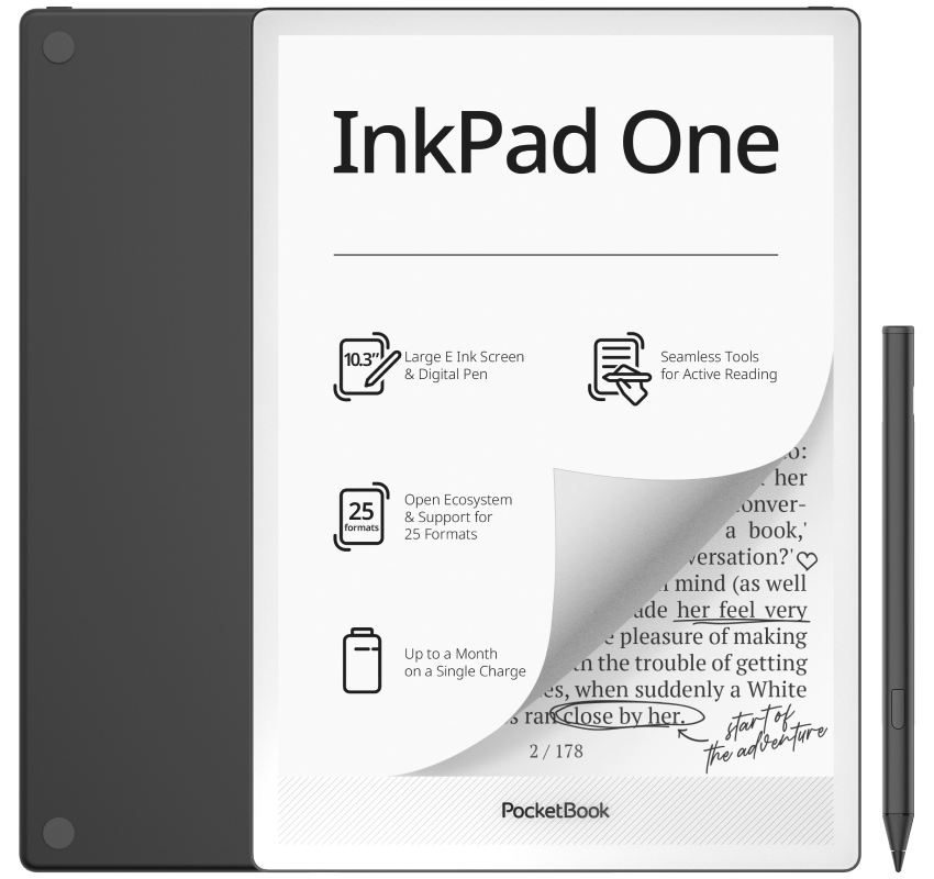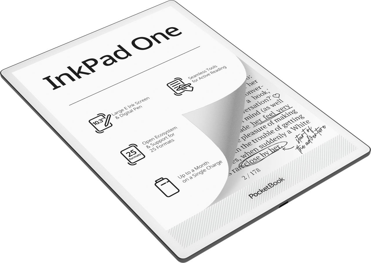 PocketBook introducerar InkPad One, en ny 10,3" e-läsare med pekpenna, utformad för aktiv läsning och bekväm handskrift. Enheten har en pappersliknande E Ink Mobius™-skärm och levereras med en digital penna för naturliga anteckningar, med en rad inbyggda handskrivningsverktyg. InkPad One är en prisvärd lösning med stor skärm för läsning, skrivning och produktivitet i vardagen.
